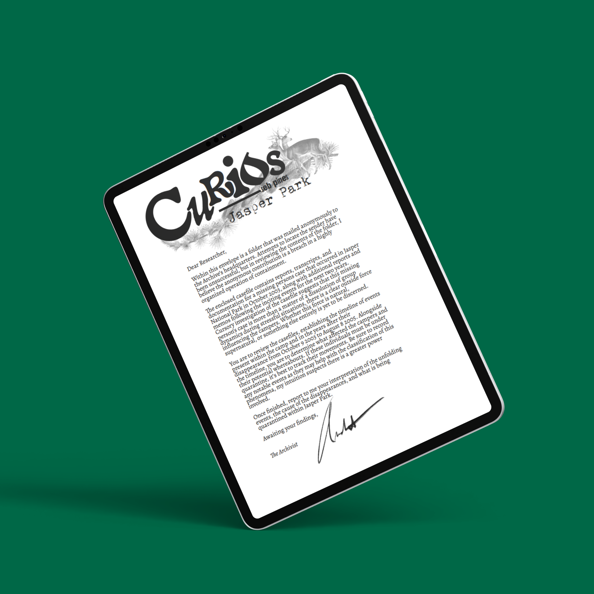 Curios: Jasper Park is an investigative horror mystery experience. An infectious story told over a series of missing persons reports, diary entries, and recovered footage.
