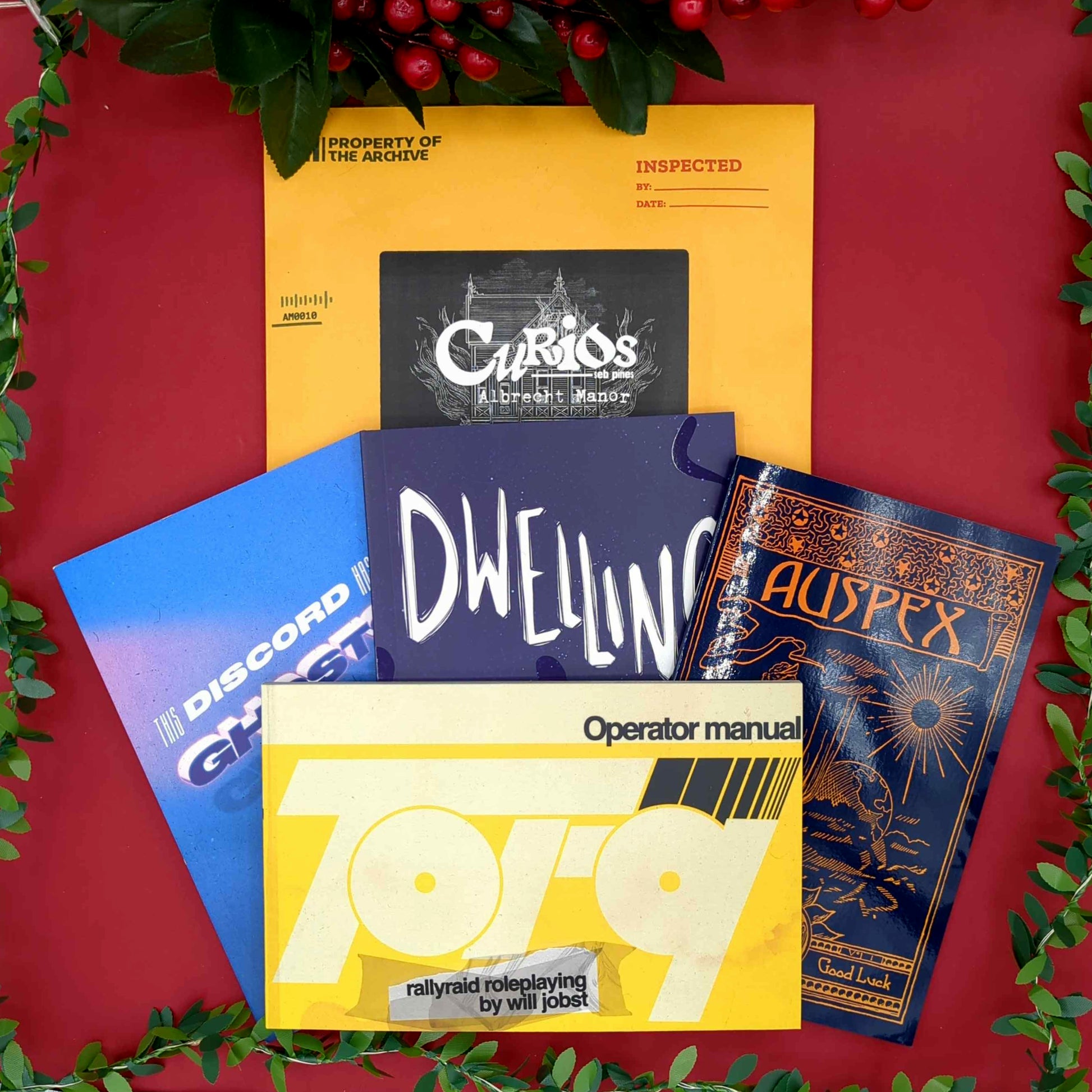 Share the gift with Good Luck Press with this crash course in everything we do, from the haunted worlds of Curios: Albrecht Manor, Dwelling, and This Discord Has Ghosts in It; to the art of divination with Auspex; and the road-warrior tactics of TORQ.