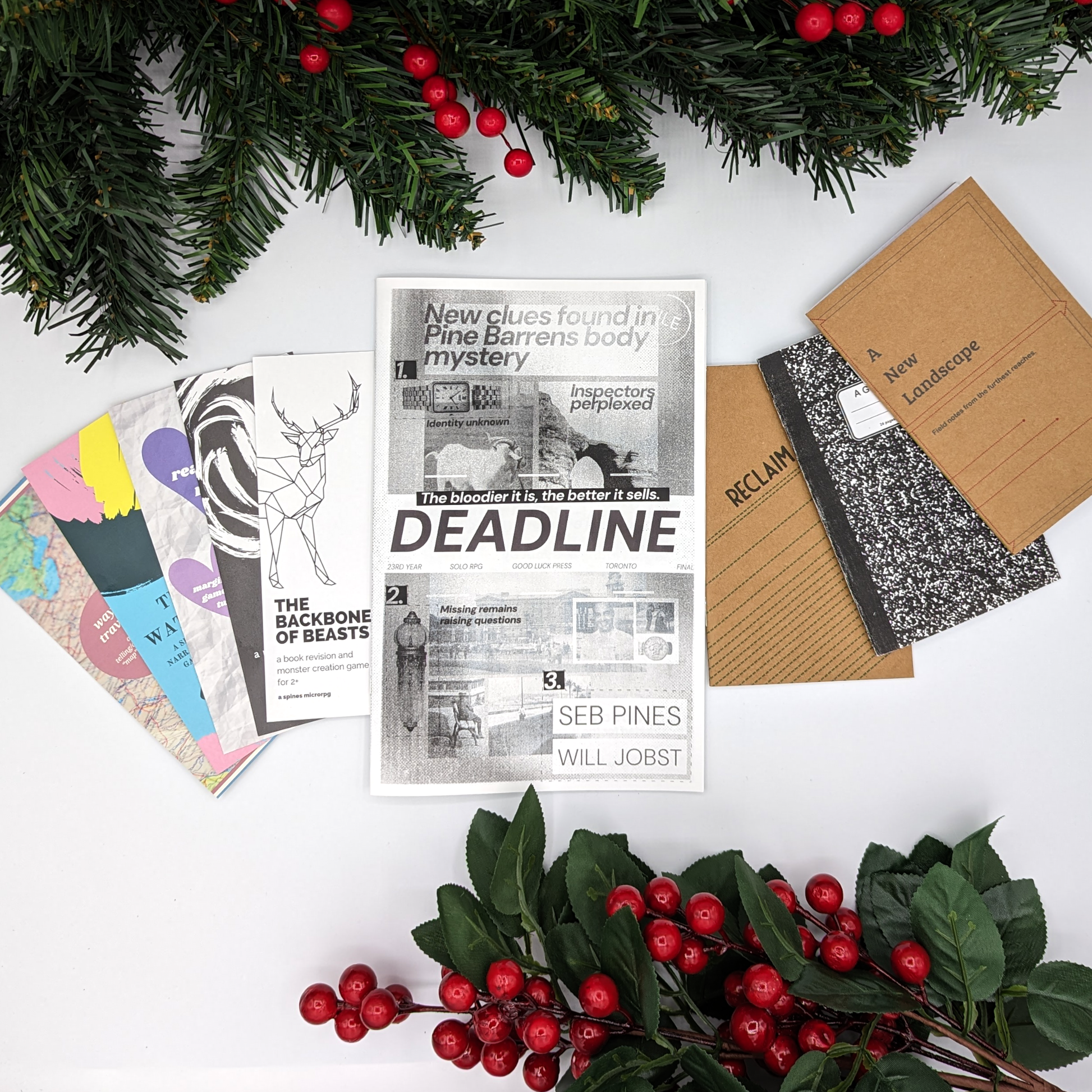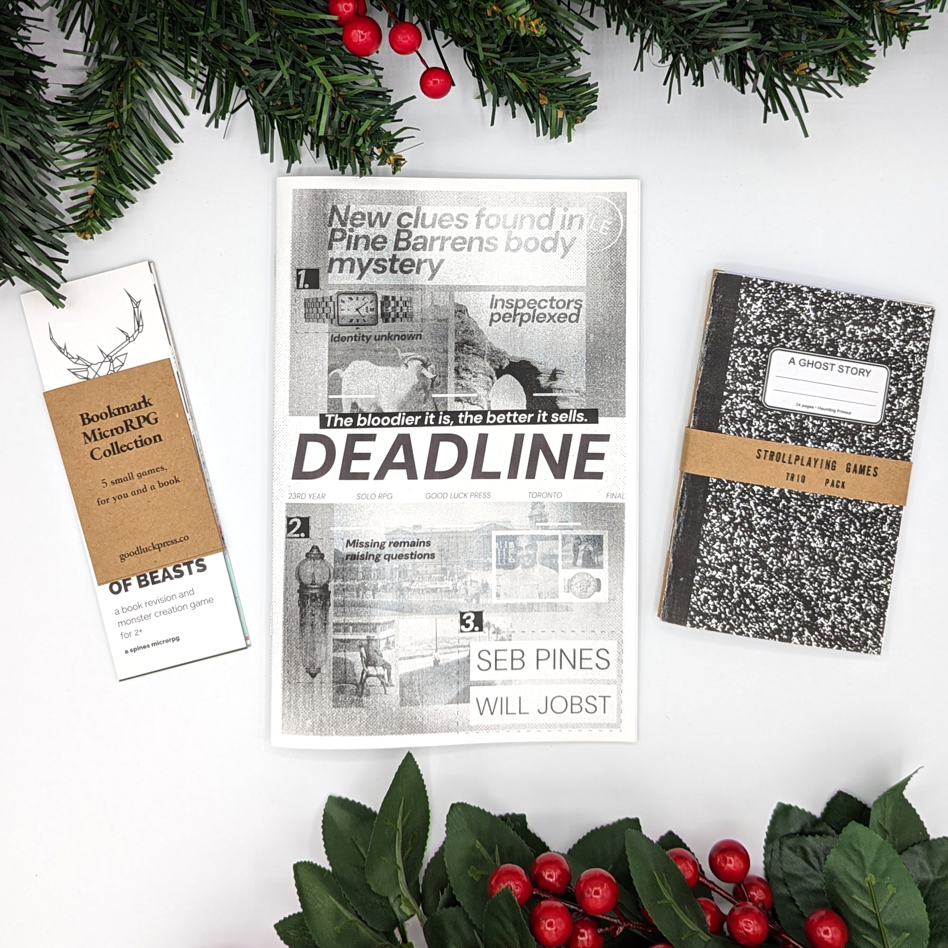 This collection includes: Bookmark microRPG Collection, Deadline, and The Strollplaying Games Trio Pack.